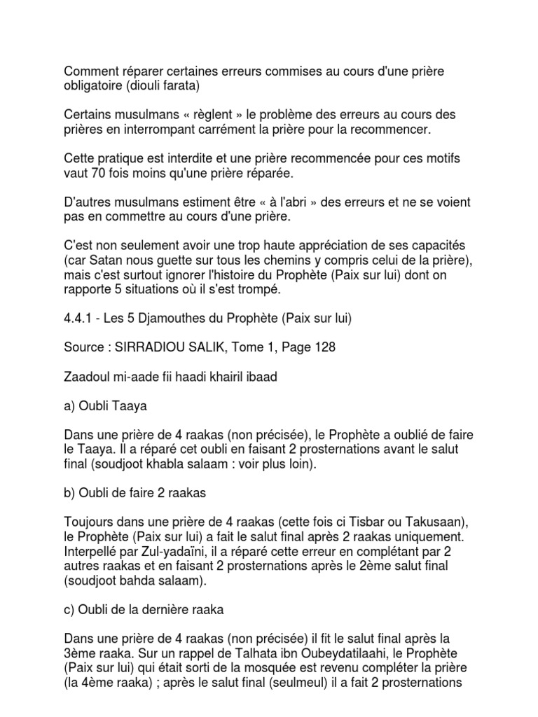 Comment reparer la priere en islam. Djeliba 24 19 mai 2019. Comment faire la priere la salate comme le prophete psl apprendre lislam en francais. Definition sujudu as sahwi signifie la prosternation en cas de distraction inattention dans la priere. Aussi il nous est essentiel de la realiser correctement et de veiller a corriger les erreurs dans la priere selon les prescriptions de notre prophete bien aime salalahu alayhi wa salamnous avons deja vu ensemble les 5 categories dans lesquelles se classent les gens durant la priere.